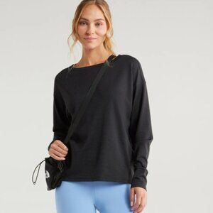 Find balance in this super-stretchy T-shirt, featuring an oversized silhouette with slouchy, dropped shoulders for a look that's perfect for before and after the studio.
