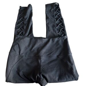 Fun black leggings with back crisscross design. Excellent condition