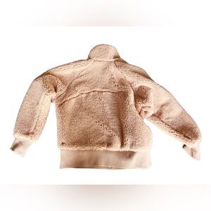 In great condition, looks new, pretty pink faux fur teddy bomber jacket, length is 24 inches long, sleeves are 27 inches