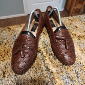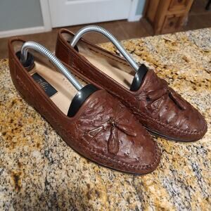 Zelli Brown Ostrich Leather Loafers Size 9M ID 110