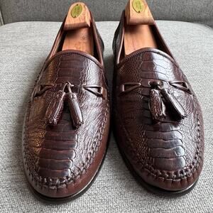 Zelli Kalahari Ostrich Leg Nappa Tassel Loafers Brown Men's 11W Preppy