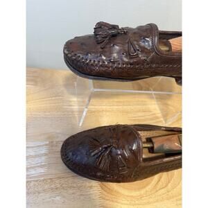 Zelli Made in Italy Ostrich Leather Slip On Loafer Shoes w Tassels Size 8.5 M JL