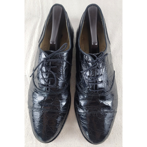 Zelli Men’s 10.5M Black Alligator Cap Toe Oxford Dress Shoes Made in Italy