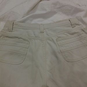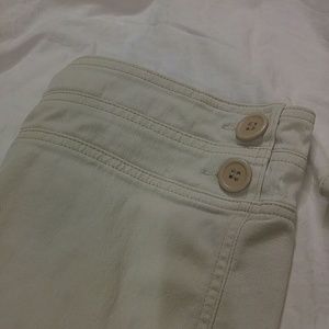 Khaki Zena Jeans capris in a size 8. Has two buttons on bottom pant cuff. Two back pockets.98% cotton and 2% spandex.