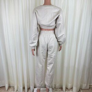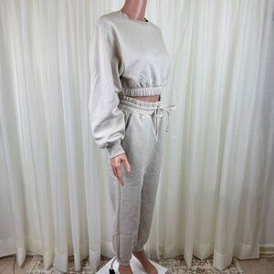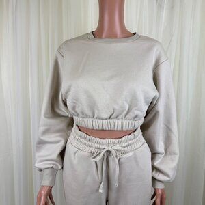 Spring Fall Winter Fleece Lined Cropped Pullover Sweatshirt & Jogger Sweatpants Matching Set