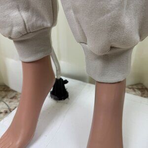 Sweatpants has elastic waist and hem
