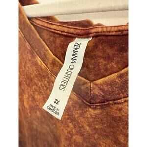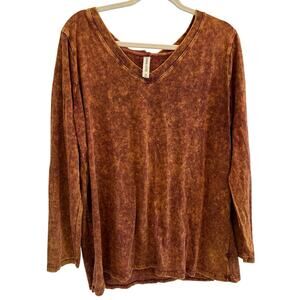 Zenana 3X Brown Rust Mineral Wash V Neck Stretch Cotton Long Sleeve Tunic EUC