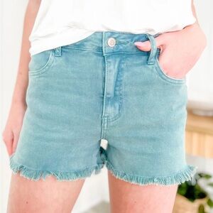 Zenana Acid Washed Frayed Cutoff Hem Shorts | Teal | | NEW/NWT!!🦋🦋
