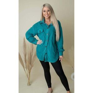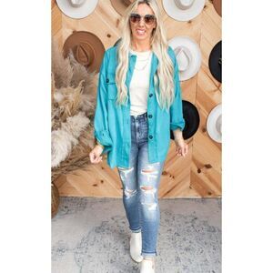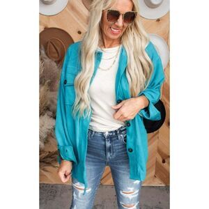 Zenana All About the Fleece Button-Down Shacket in Light Teal S-L QJ-4003D4