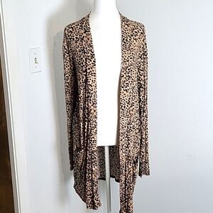 Zenana Animal Print Long Cardigan with Front Pockets, Size Medium