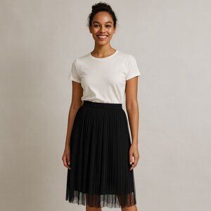 Featuring a soft elastic waistband for comfort, this skirt has a lightweight flowy tulle overlay with delicate pleats that give it a timeless yet trendy look. Perfect for romantic, coquette, or balletcore-inspired outfits, this versatile piece works beautifully for both casual and dressy occasions.