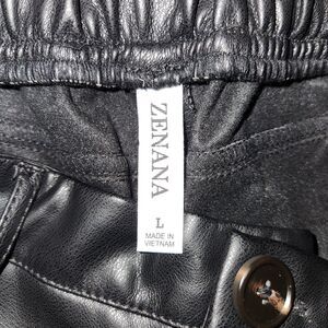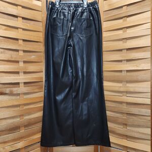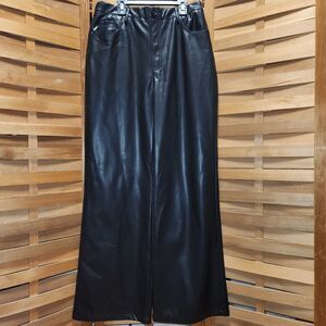 Zenana Black Wide Leg Faux Vegan Leather Pants Women L Button Zipper Closure