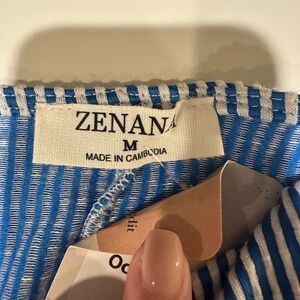 Zenana Blue Striped Batwing Sleeve Women's Top Size Medium