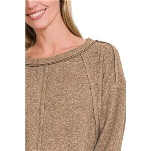 Zenana Brushed Hacci Exposed Seam Hi Low Sweater