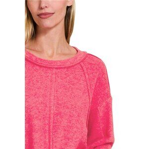 Zenana Brushed Hacci Exposed Seam Hi Low Sweater