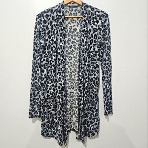 Zenana - Cardigan Leopard Print Open Front Long Sleeve - Size S - Gray