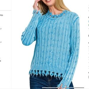 Zenana “ Carly “ Zenana Cable Knit Sweater with Fringe Detail 29