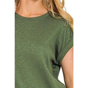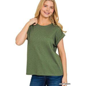 Zenana Cotton Modal Slub Rolled Sleeve T-Shirt
