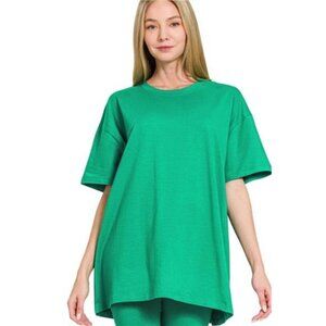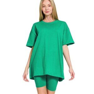 *This fashion two-piece set combines comfort and style with an oversized t-shirt and fitted biker shorts. Made from a soft cotton-blend fabric, the set features a relaxed-fit top with dropped shoulders and a classic crew neckline. The matching high-waisted biker shorts provide comfortable coverage and mobility. Perfect for lounging, running errands, or casual outings. The heather grey color offers versatile styling options. The material is breathable and easy to care for, making it ideal for everyday wear. This set embodies the current athleisure trend while maintaining classic comfort.