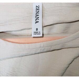 Zenana Crinkle Texture Beige Short Sleeve Top With Ruffle Detail S 100% Polyeste