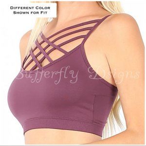 Zenana Criss Cross V Padded Bralette Dark Green EUC size small
