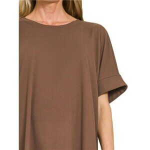 Zenana Full Size Brushed Dty Microfiber Round Neck Top and Biker Shorts Set