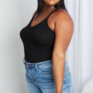 Zenana Full Size V-Neck Ribbed Cami in Black