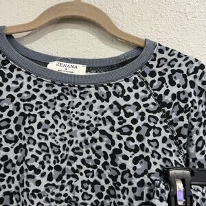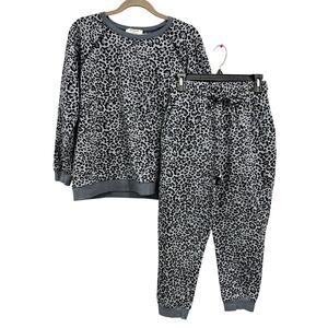 This Zenana lounge set is the ultimate mix of cozy and cute, featuring a gray leopard print that adds a fun twist to a classic lounge look. The set includes jogger-style pants with a comfy fit and a matching crew neck sweatshirt for that effortless, laid-back vibe. Whether you’re relaxing at home or running errands in style, this set is both soft and trendy. Size small.