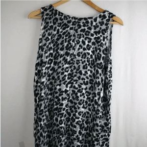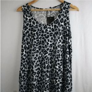 Zenana Grey Leopard Print Sleeveless Loose Fit Long Length Tank Women's Size XL
