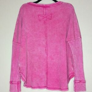 Zenana Hot Pink Mineral Wash Waffle Crew Neck
