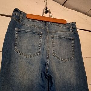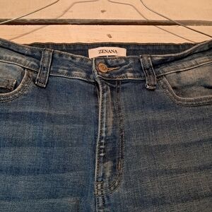 These are Zenana women's jeans in size 30 with a classic fit and a straight leg design. They come in a light wash blue color and are made of a blend of spandex and cotton for stretch and comfort. The jeans feature a mid-rise waist, a 5-pocket design, and a relaxed straight leg style.