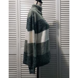 Zenana Knit Turtleneck Sweater Women's XL Green Cream Striped Balloon Sleeve
