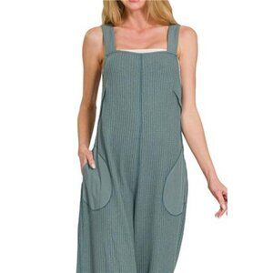 *The Knit Waffle Wide Leg Overalls are a cozy and stylish garment that combines the comfort of knit fabric with the on-trend look of wide-leg overalls. Made from waffle knit material, these overalls offer a textured and slightly structured appearance that adds visual interest to the outfit. The wide-leg silhouette provides a relaxed and flowy fit that is both comfortable and fashionable. The adjustable straps and overall design give these overalls a casual and laid-back vibe, perfect for everyday wear or lounging at home. Pair them with a basic tee or sweater for a cozy and stylish ensemble. The Knit Waffle Wide Leg Overalls are a versatile and trendy choice that can be dressed up or down for various occasions.