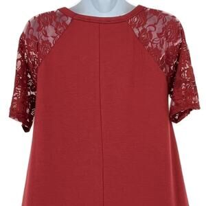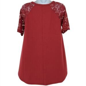 Top, Blouse, Shirt, Tunic, Round Hem, Lace Detail, Short Sleeve, Relaxed Fit, Soft, Everyday, Casual, Travel,