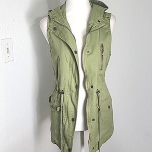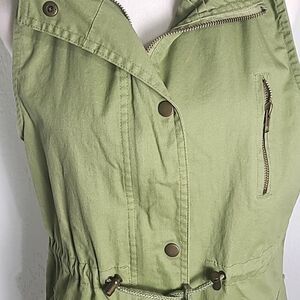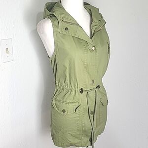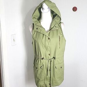 Zenana Light Green Hooded Vest, Zipper/Snap, Drawstring Waist, Pockets, Size Med