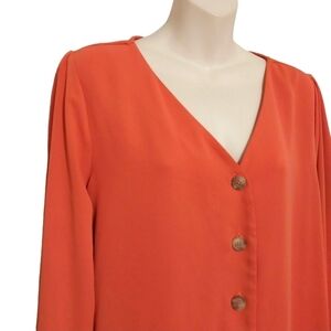 Zenana Long Sleeve Dark Salmon Button Down Top Sz M