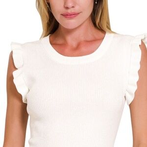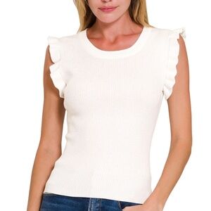 Zenana “ Marcy “ Zenana RUFFLE TRIM RIBBED SWEATER TOP 39