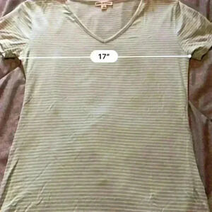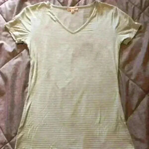 Zenana Mint Green/White Short Sleeve Striped V-neck Tee Medium