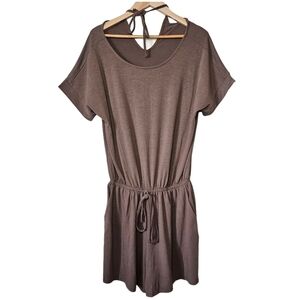 Zenana Mocha Short Sleeve Romper with Elastic Waist Size Medium