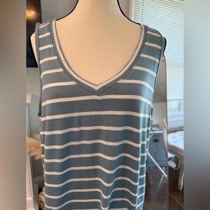 Zenana Outfitters Blue and White Striped Tank Top NWOT