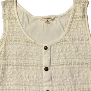 Zenana Outfitters Lace Mesh Sheer Faux Button Off White Tank Top