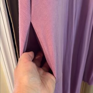 Zenana dress . I’m 5’4” and it sits below my knees . It’s lavender , stretchy , and has pockets . New without tags . (Pc)