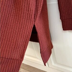 Warm and chic crew neck sweater. Textured knit for added style. Ideal for layering. Perfect color for fall. Size S, but oversized.