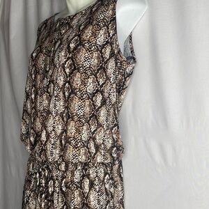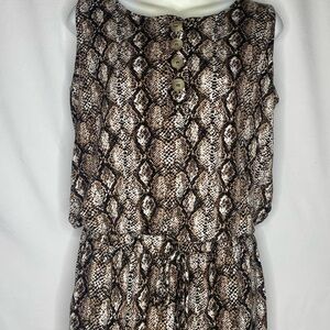 Chic jumpsuit with bold snake print. Sleeveless and stylish. Perfect for casual wear.