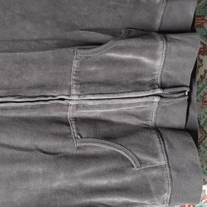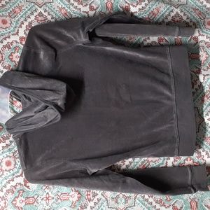 Preowned, good condition. Freshly washed. Hang to dry. Velvety soft blend of 60% cotton, 40% polyester. Hooded. 2 front pockets. Zip up; zipper is functional. Color is a lighter shade of grey that mimics other colors in certain lighting settings.