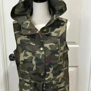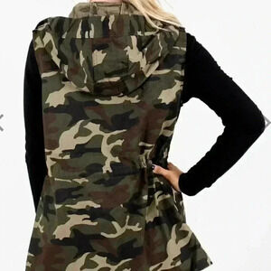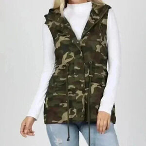 Zenana Outfitters Vest Women Medium Camouflage Hooded EUC