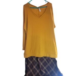 Zenana Outfitters Women's 1X Mustard Yellow Long Sleeve Waffle Knit V-Neck Top