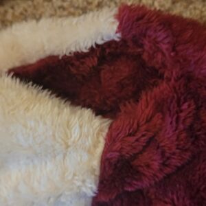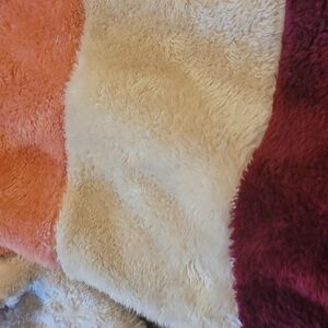 Zenana Outfitters fluffy color block top, very soft and cozy. Maroon, tan, pink. Pockets.