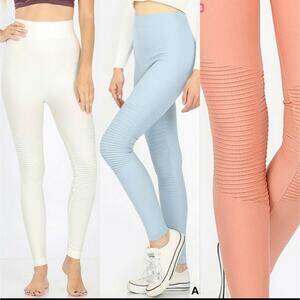 Stretchy moto leggings! High waist. Pleated moto detail at knee. These are more like tights than jeans. A little sheer because of color.