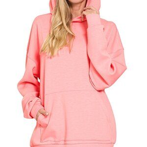 Zenana Oversized Scuba Hoodie with Kangaroo Pocket